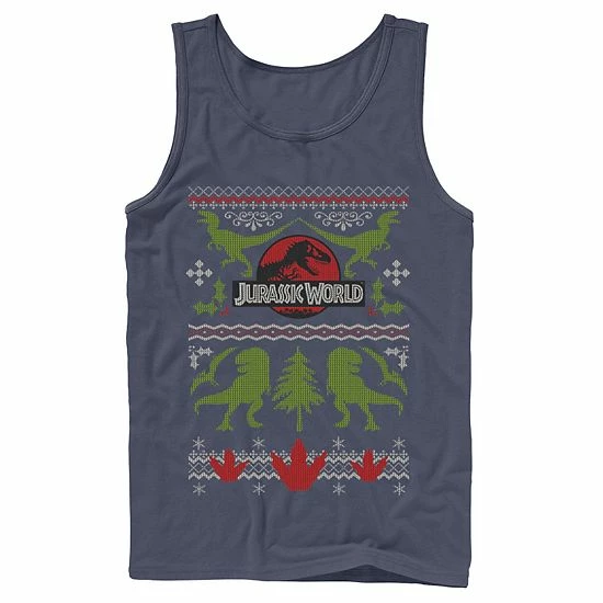 He’ll love the look of this Men’s Jurassic World Dinosaur Xmas Ugly Sweater Graphic Tank Top.