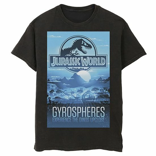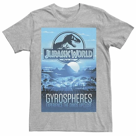 He’ll love the look of this Men’s Jurassic World Gyrospheres Tour Park Poster Graphic Tee.