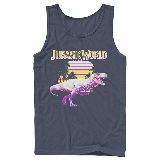He’ll love the look of this Men’s Jurassic World Neon Purple & Yellow T-Rex Graphic Tank Top.