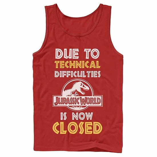 He’s sure to love the look of this Men’s Jurassic World Technical Difficulties Sign Tank Top.