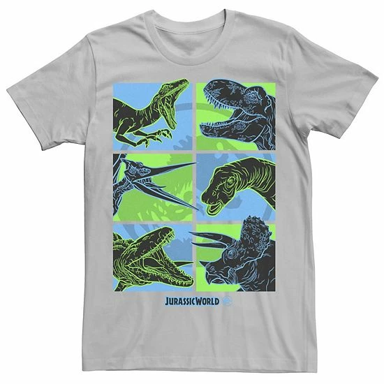 Face it… You know you like this men’s Jurassic World Two Dino Faces Comic Pop Tee.