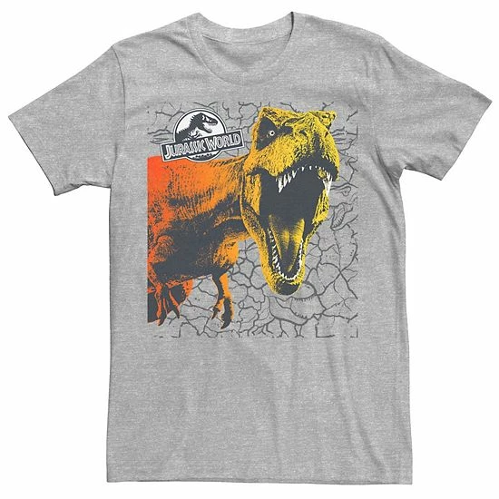 Make your wardrobe roar with this men’s Jurassic World Two T-Rex Color Pop Cracks tee.