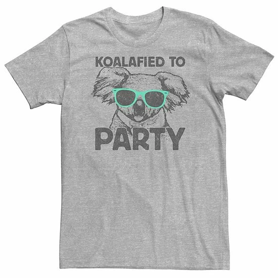 Bring the fun with this men’s Koalafied To Party Koala Sunglasses Portrait Tee.