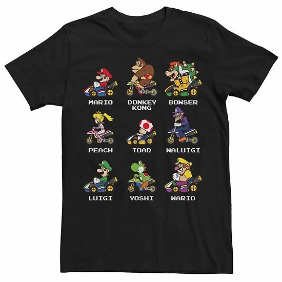 Gear up to hit the road in this men’s Nintendo Mario Kart Racers side view names tee.