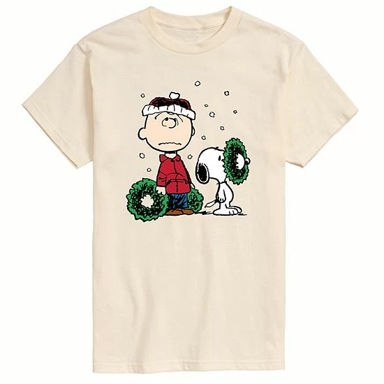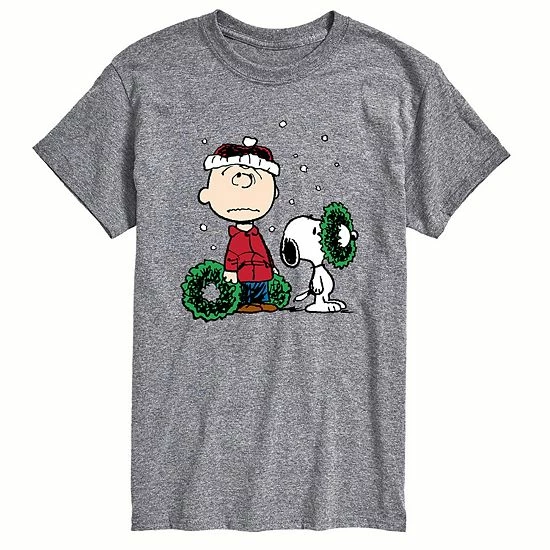 Everyone that loves Peanuts Charlie Brown at the holidays will love this Charlie Brown and Snoopy with wreaths graphic tee.