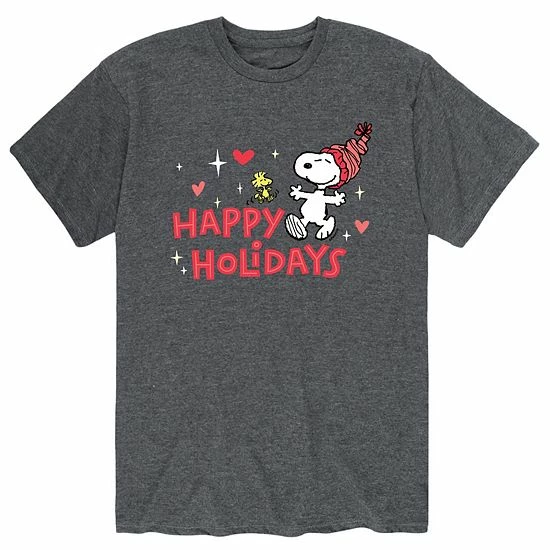 Celebrate the holidays with the Peanuts gang wearing this men’s Christmas tee.