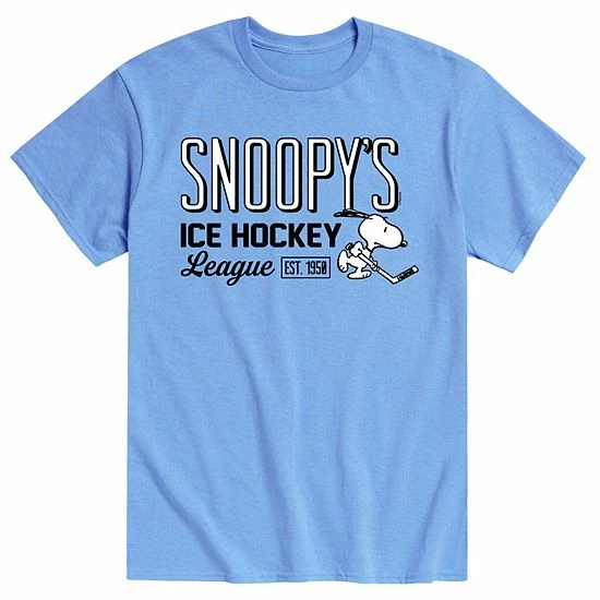 Meet Charlie Brown and friends on the ice with this men’s Peanuts hockey tee.