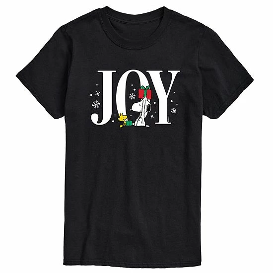 Spread the joy this holiday season with this Peanuts Snoopy and Woodstock joy graphic tee.