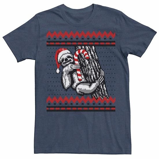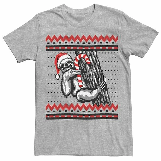 Cute meets ugly festive with this candy cane wielding sloth graphic tee for a lovable combination.