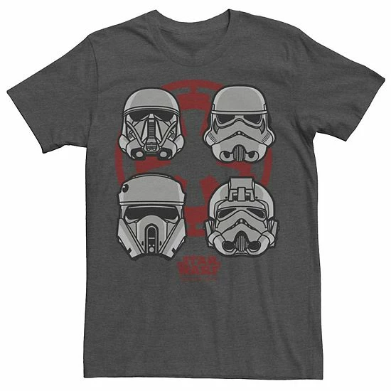 Join the troops and look amazing in this men’s Star Wars Rogue One Stormtrooper Helmet Empire Logo Tee.