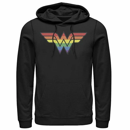 Proudly show off your inner strength with this men’s Wonder Woman rainbow hoodie.
