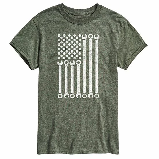 Show off your patriotic side in the garage with this men’s wrench flag tee.