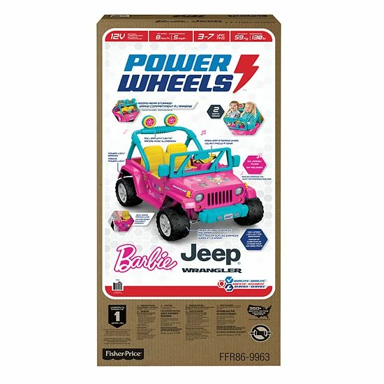 Cruise with some girl power in this Power Wheels Barbie Jeep Wrangler.