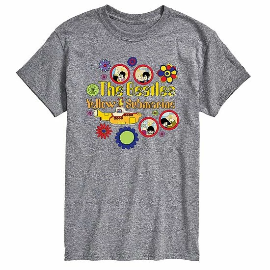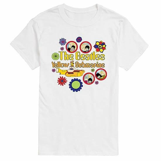 Sail the seven seas with the fab four wearing this men’s Beatles Yellow Submarine tee.