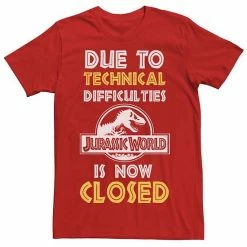 Licensed Character Men’s Jurassic World Technical Difficulties Sign Graphic Tee Red Heather