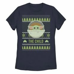 Licensed Character Junior’s Star Wars The Mandalorian The Child Christmas Sweater Style Tee Navy