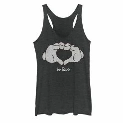 Licensed Character Juniors’ Disney Mickey Mouse Rainbow Fill Heart Shaped Hands Tank Pink Heather