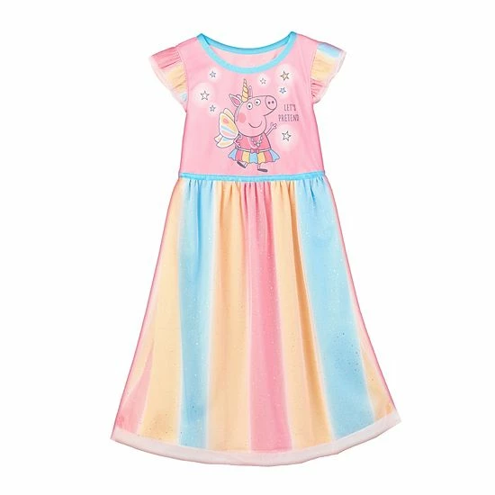 Bedtime will be a breeze with this toddler girls’ Peppa Pig rainbow skirt fantasy gown.